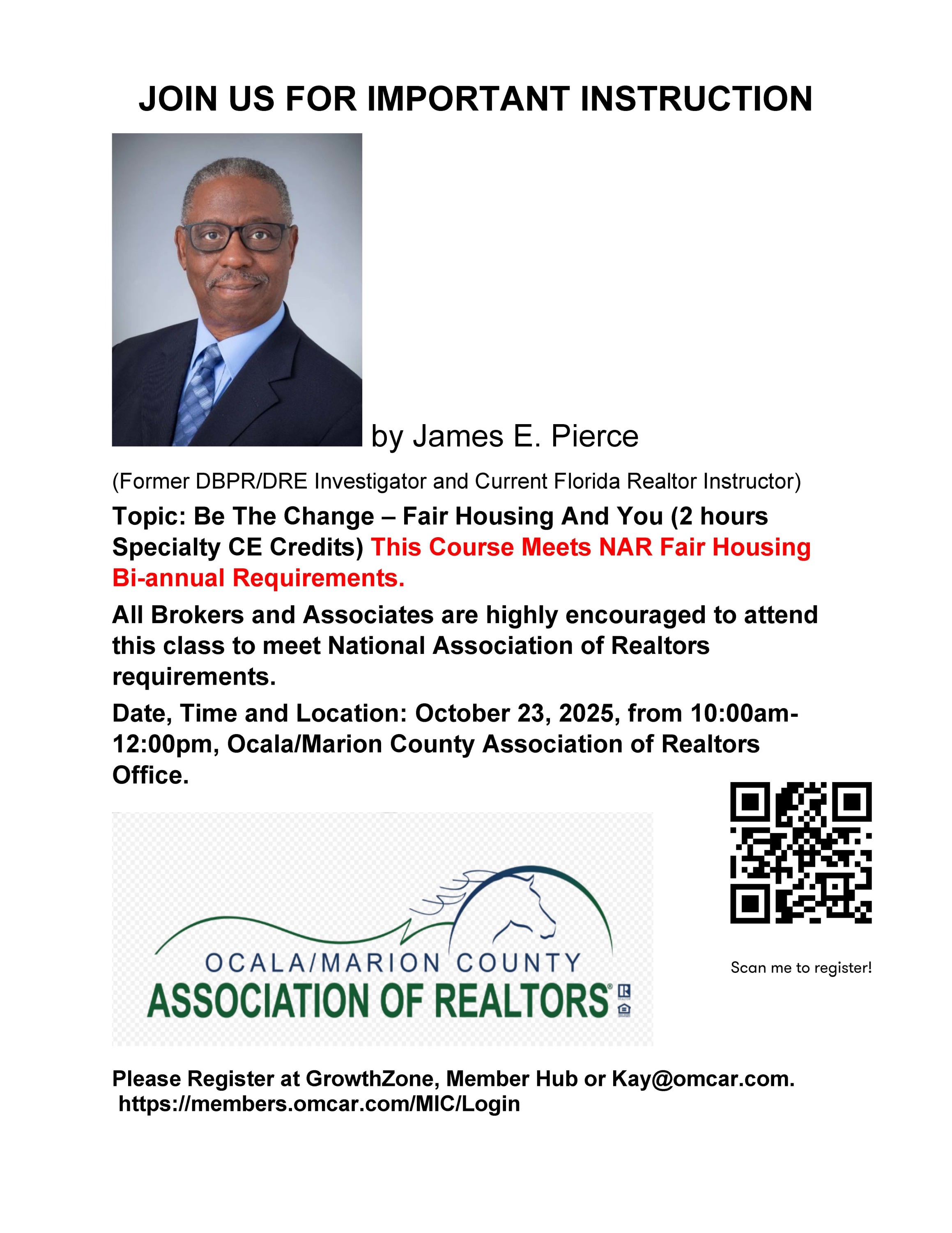 The purpose of this class is to provide real estate professionals working in today's diverse real estate environment with the knowledge and information they need to understand the importance of fair housing laws and ensure they are responsibly practicing real estate in a nondiscriminatory fashion Instructor: James Pierce 2 CEImages